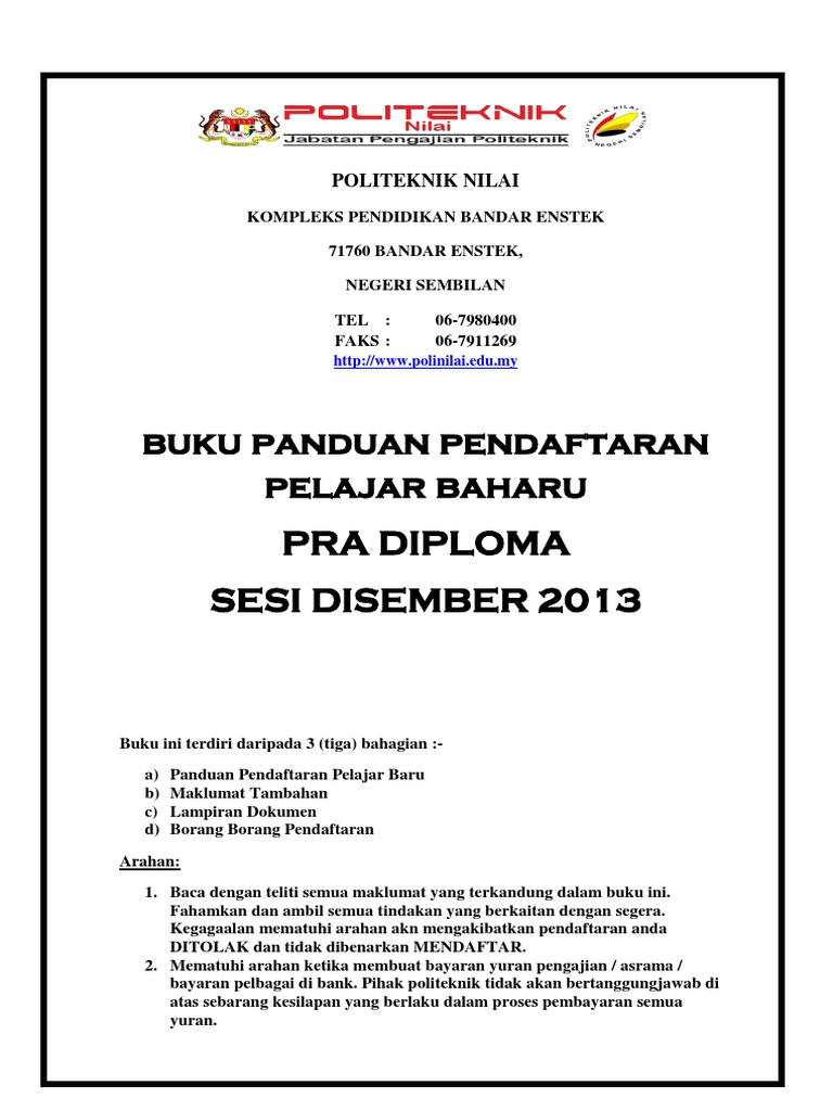 Buku Panduan Pendaftaran Baru Pra Diploma Dis2013 Pdf